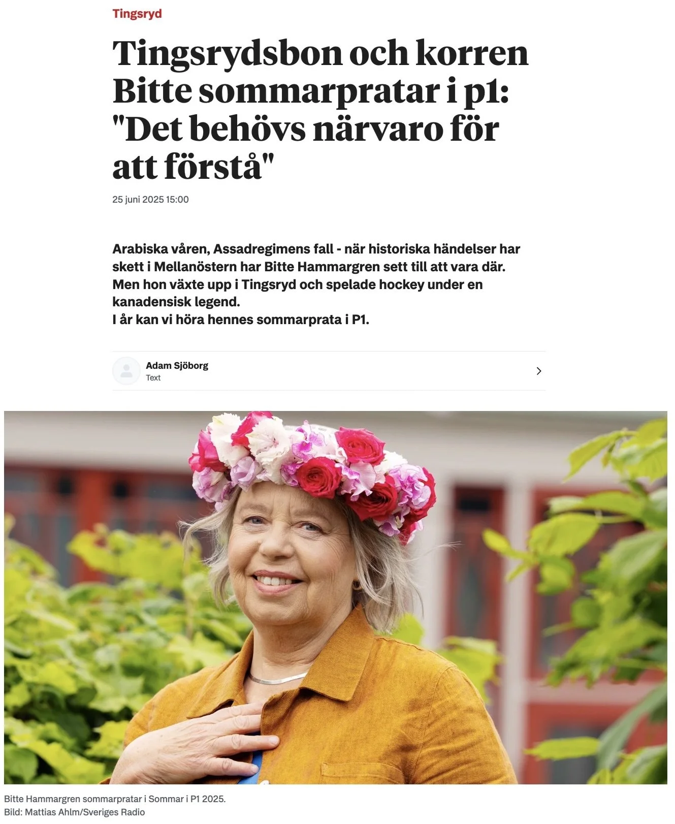Intervjuad av Smålandsposten – husorgan i min barndoms Tingsryd – inför mitt Sommarprat i P1. Länk här.